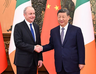 7月16日,两名小朋友在纪念品商店内一组紫水晶摆件前驻足观看。