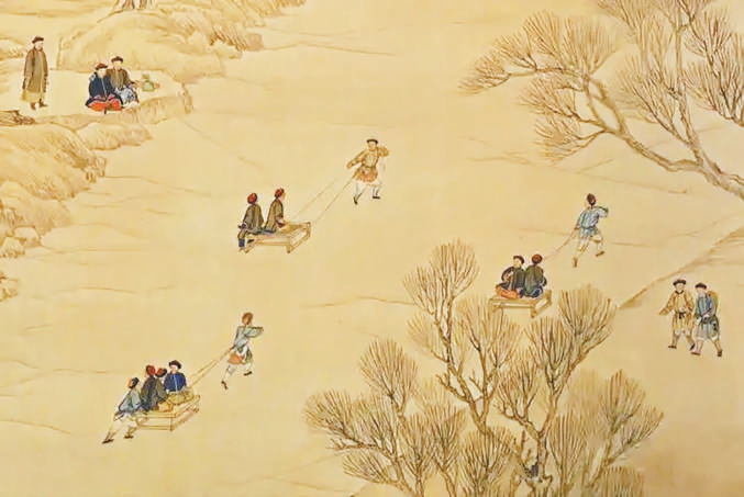 慈禧太后的御用冰床更显奢华,特制的冰床设有围栏与顶棚,可遮风挡雪,装饰华丽,由太监专门推送滑行,尽显皇家气派。除了出行功能,冰床还是宫廷娱乐的重要载体,《冰床联句》中“或云便行李,或云供游歌”的描述,便印证了它兼具运输与游乐的双重价值。