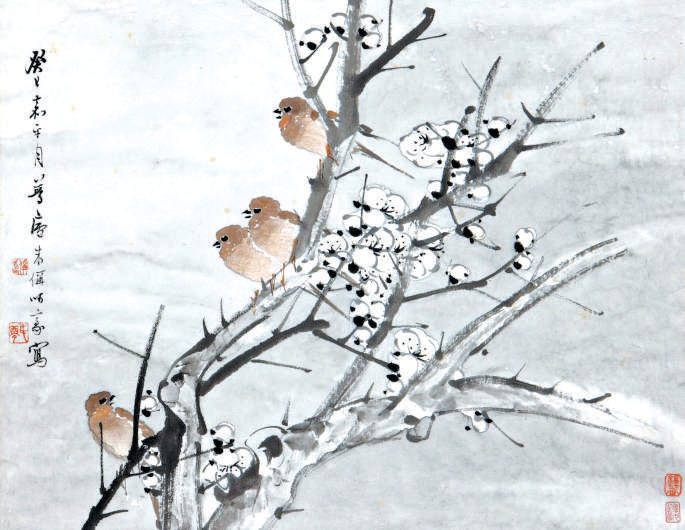 清代 朱偁《寒梅鸟语》