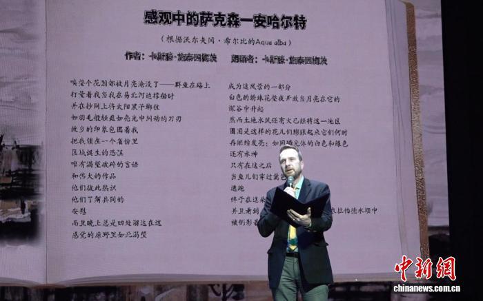 德国诗人卡斯滕·施泰因梅茨朗诵诗歌《感观中的萨克森—安哈尔特》。姜禹帆 摄