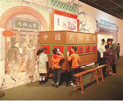 “看到了明清首饰,好精致!”“小吃视频让我想起了去年逛庙会时大饱口福。”小学四年级学生杨紫清、黄奕豆高兴地分享观展感受。