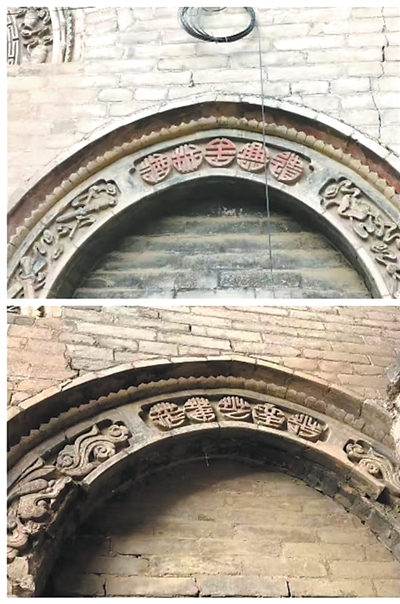 图为曹家大院西院窗楣砖刻篆字诗句。王鸿飞供图