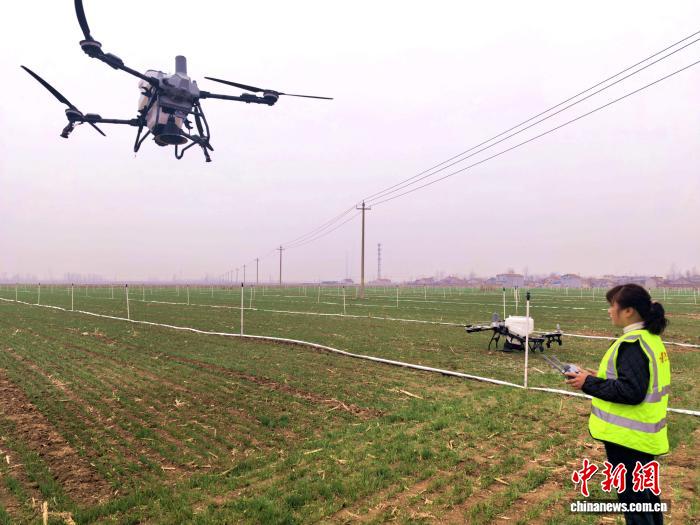 “以千亩麦田为例,三台机器同时作业,不到半天就能撒完肥。”飞手张宗运正在田间操控“空中舞者”。他向中新社记者介绍,一台无人机每小时作业380亩,效率是人工的50倍以上,还能大幅节约农药和用水量。