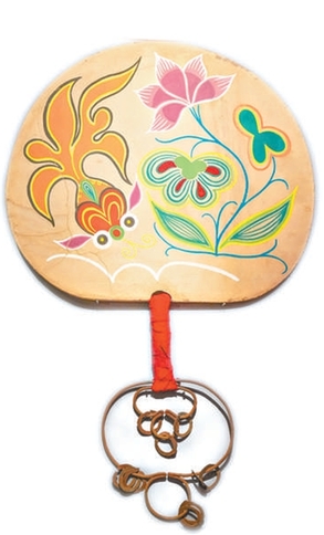 太平鼓在北京地区流行,彭蕴章在诗作《幽州土风吟·太平鼓》中对其具体的表演有详细的描绘:“太平鼓,声冬冬,白光如轮舞索童。一童舞索一童唱,一童跳入光轮中。广场骈集四方客,曼衍鱼龙闹元夕。姹女弄竿竿百尺,惊鸿婉转凌风翼。今夜金吾铁索开,铜街踏月人不归。”今天,京西太平鼓已经成为国家第一批非物质文化遗产代表作,并且发展为由鼓点、唱曲组成的,曲调丰富、技巧繁多的民间舞蹈形式。展览中展出的金鱼图案太平鼓,做工精美、色彩鲜明,金鱼的寓意也吉祥讨喜,正与太平鼓象征天下太平安乐、祈福迎新的意蕴相得益彰。