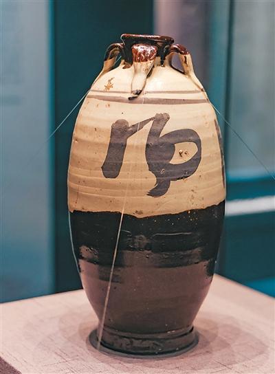 南宋时期,宿州是宋、金对峙的前线。宿州市小隅口北路出土的金代“风花雪月”四系瓶为国家一级文物,造型浑厚大方,色彩对比鲜明。此瓶为酒器,小口,卷沿,短颈,溜肩,长弧腹,圈足状。肩颈部竖装四系,口沿及颈、系上部施酱釉,其下至上腹部施白釉,下腹部至底部施酱釉。肩部饰褐彩两圈,上腹部有褐彩行草书“风花雪月”四字,笔力遒劲、行云流水,堪称书法佳作。考古研究认为,“风花雪月”四系瓶极有可能是宿州当地窑口烧造的磁州窑系瓷器,不仅体现了当时的制瓷工艺,也是古代宿州书法艺术和酒文化的结合。