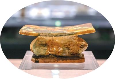 唐三彩兔形枕。