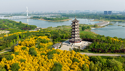 河北省石家庄市滹沱河城区段呈现出一派春日美景。
