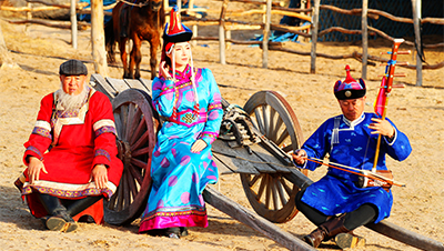 在内蒙古通辽市奈曼旗宝古图沙漠旅游区,牧民实景演绎大漠放牧生活。