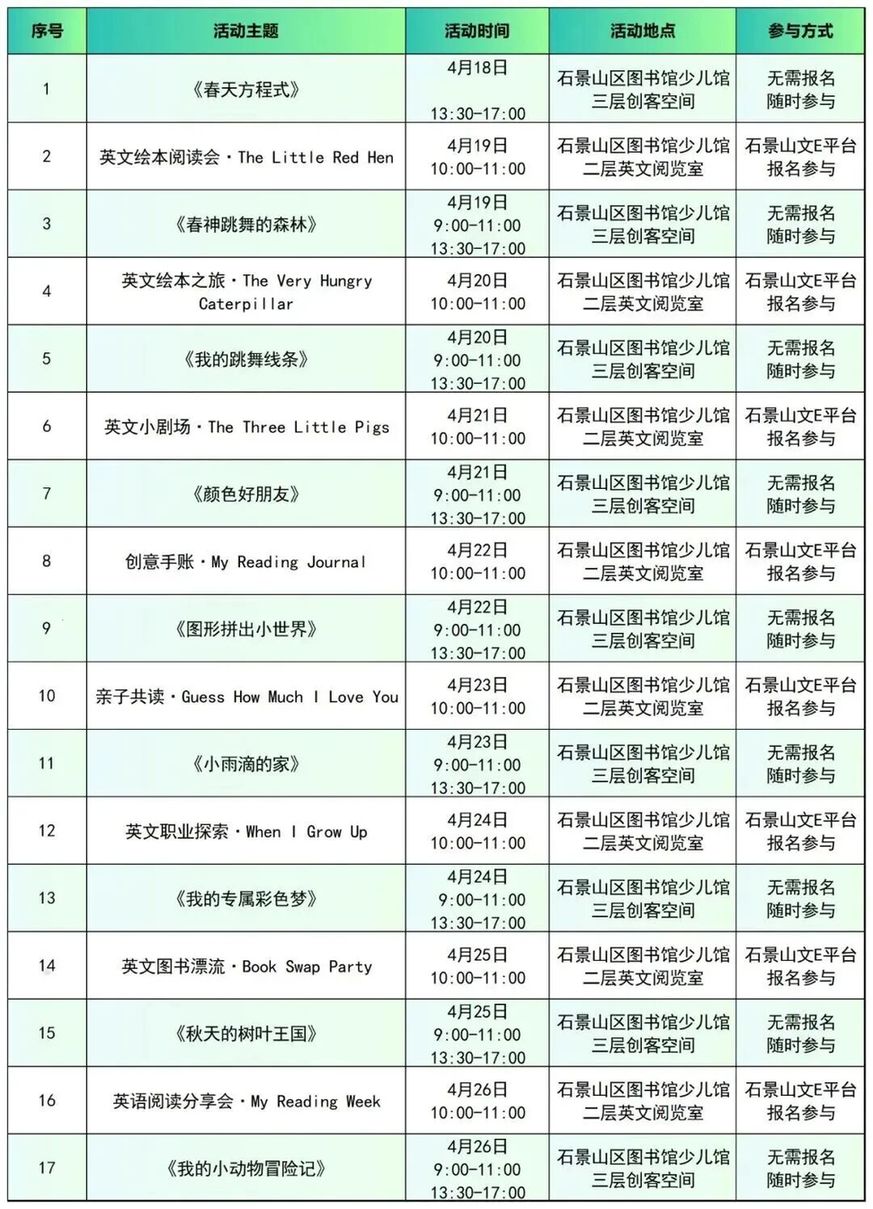 活动时间:4月25日(周六)10:00-11:00