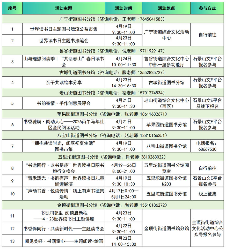 石景山区2026年世界读书日